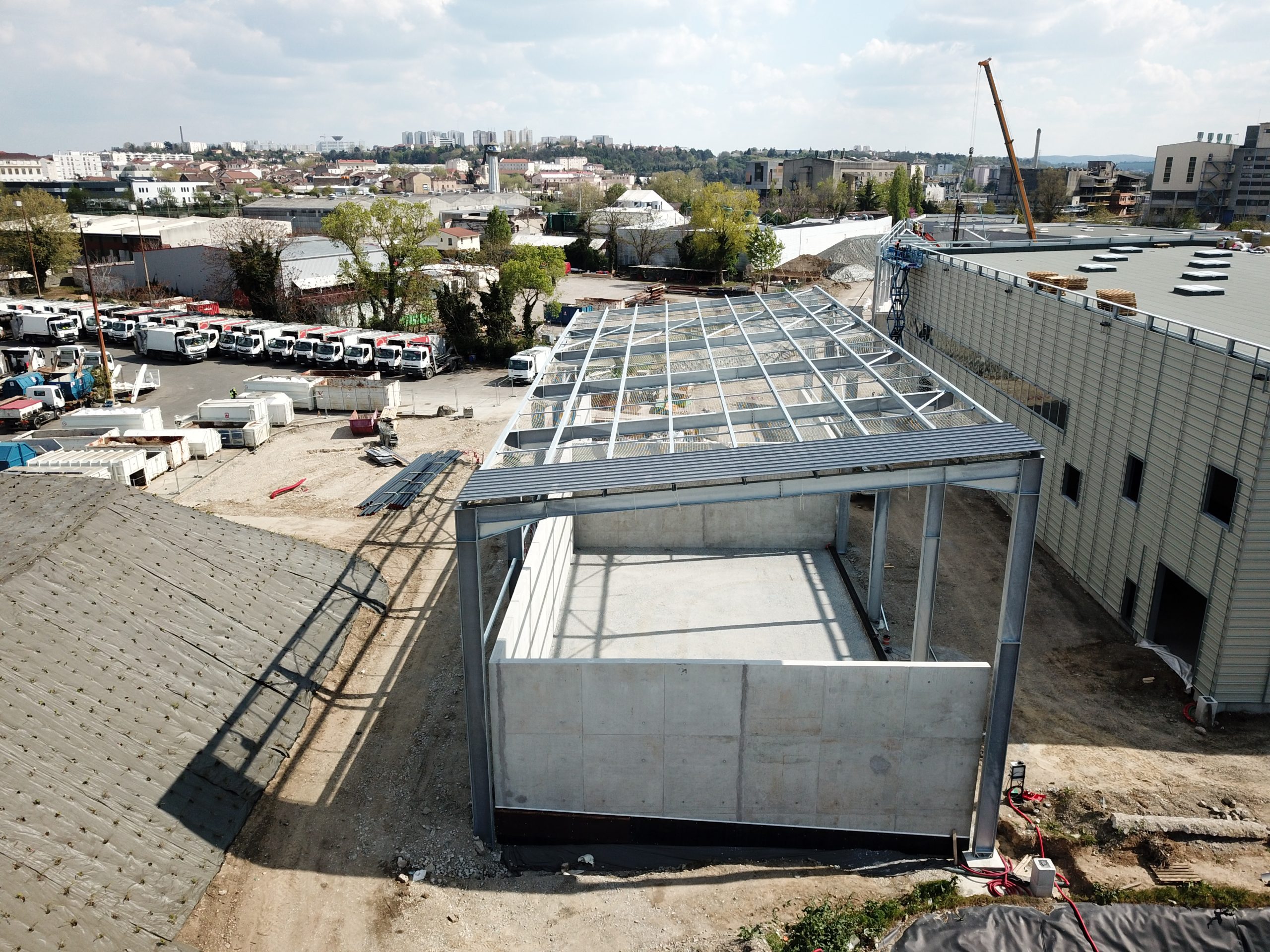 Réaménagement du bâtiment J avec le réfectoire et du bâtiment Q avec le vestiaire centralisé, en 2 phases afin de ne pas perturber l’exploitation du site en fonctionnement.