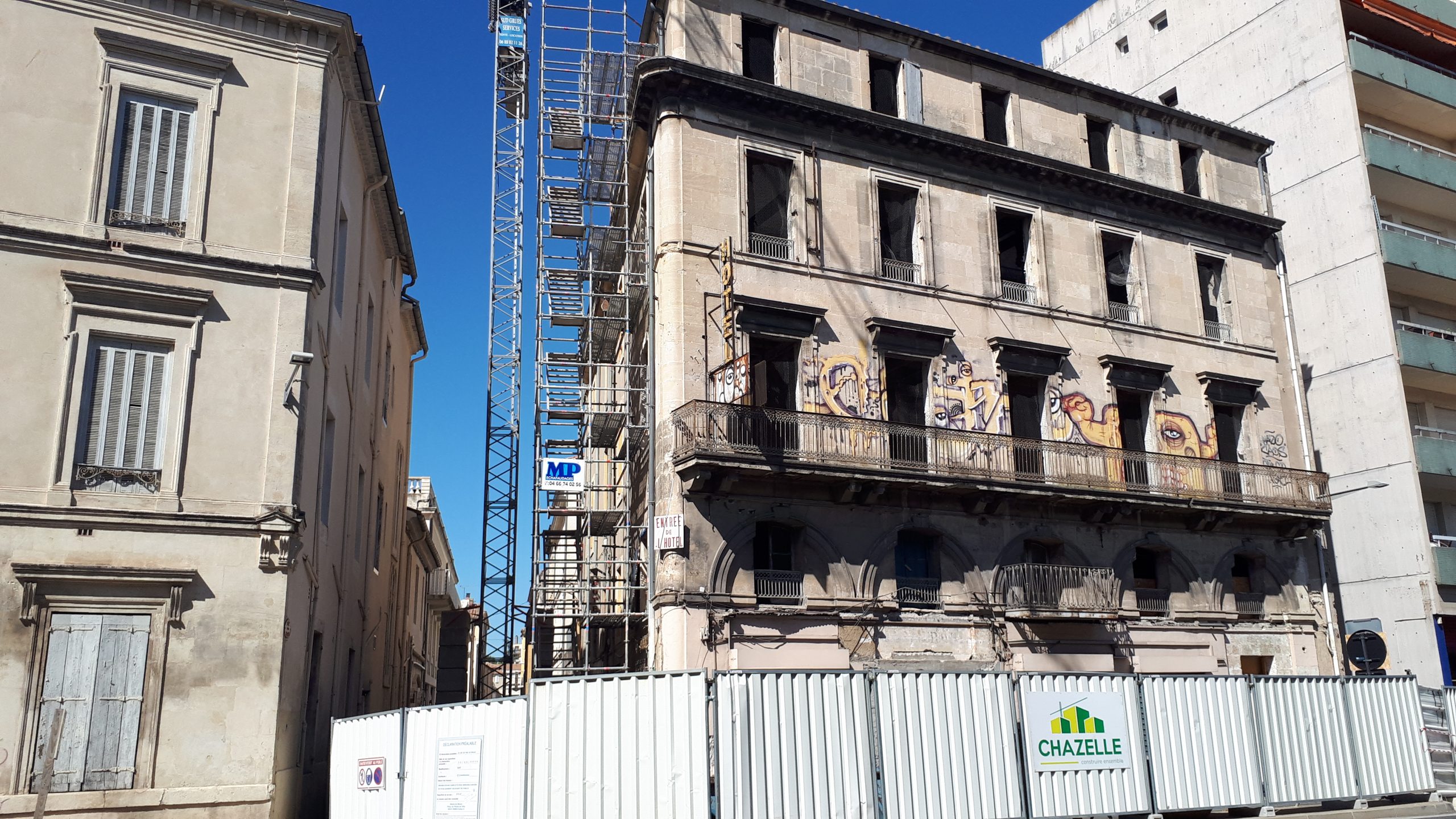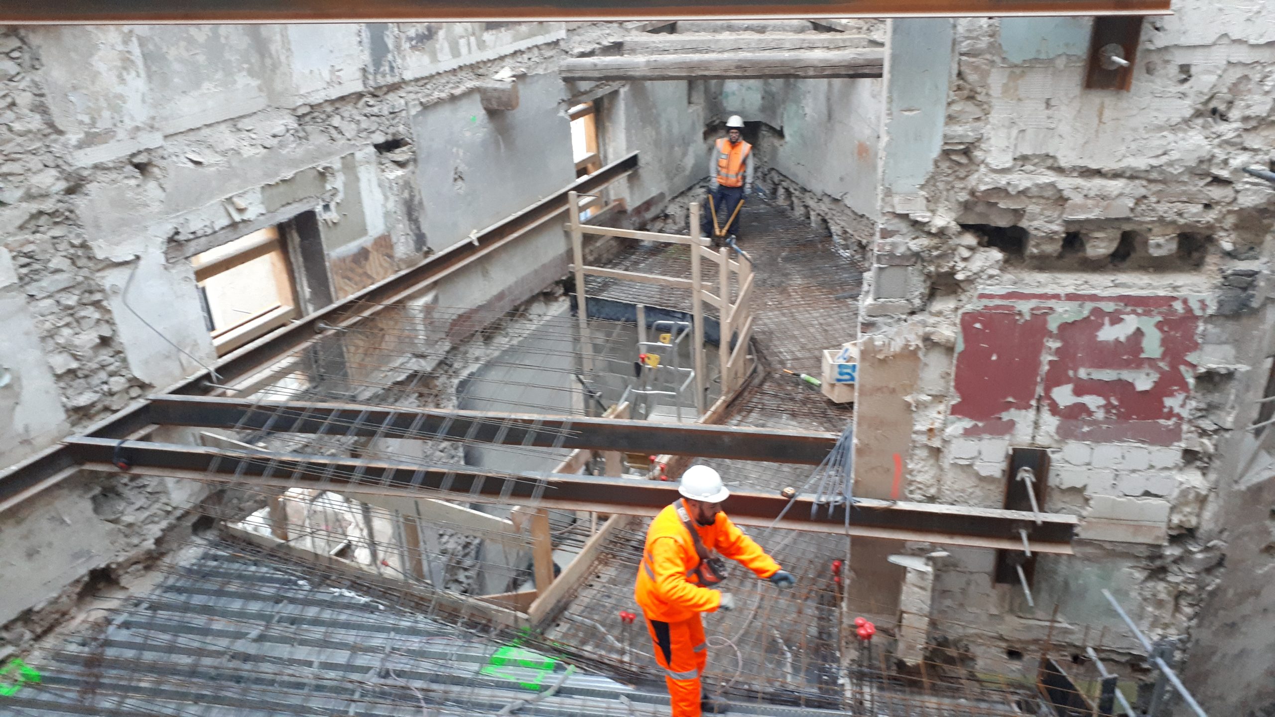 Dépose totale de l’intérieur du bâtiment en conservant les façades existantes.